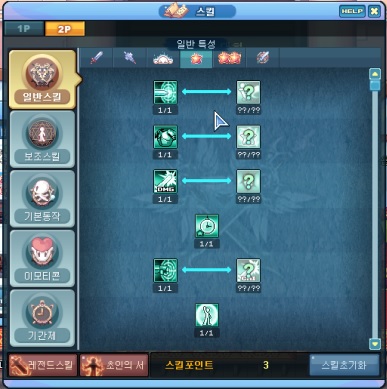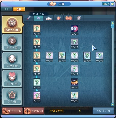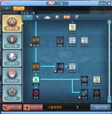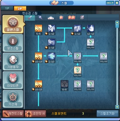 - 한손검 바탕 스킬트리 + 파워그라인드 20레벨[메모리얼 파워그라인드 lv.4 이상 필수]
